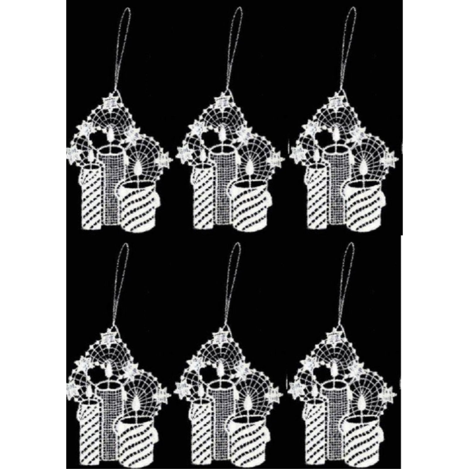 Three Candles Christmas Tree German Lace Ornament Hangers Set of 6