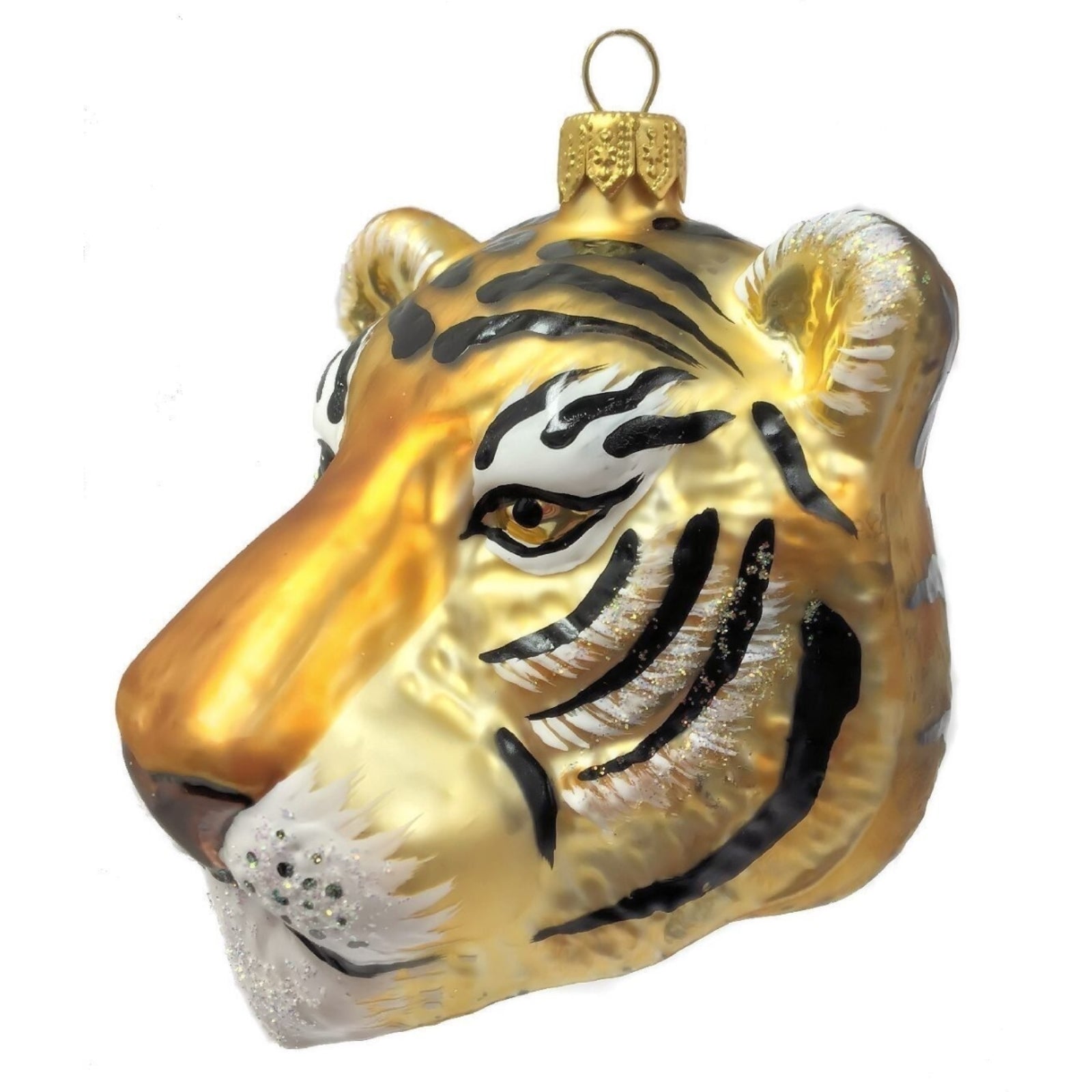 Tiger Head Figural Polish Glass Christmas Ornament Wild Cat Animal Decoration