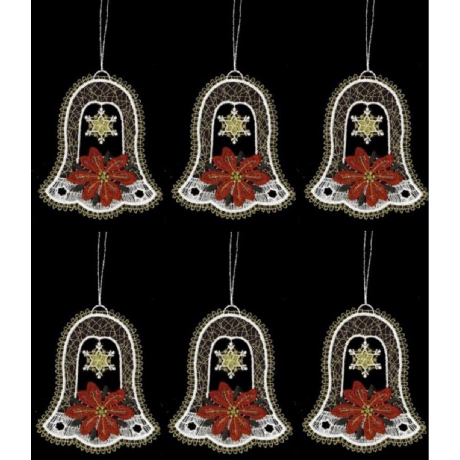 White and Gold Poinsettia Bell German Lace Christmas Ornaments Set of 6 Germany