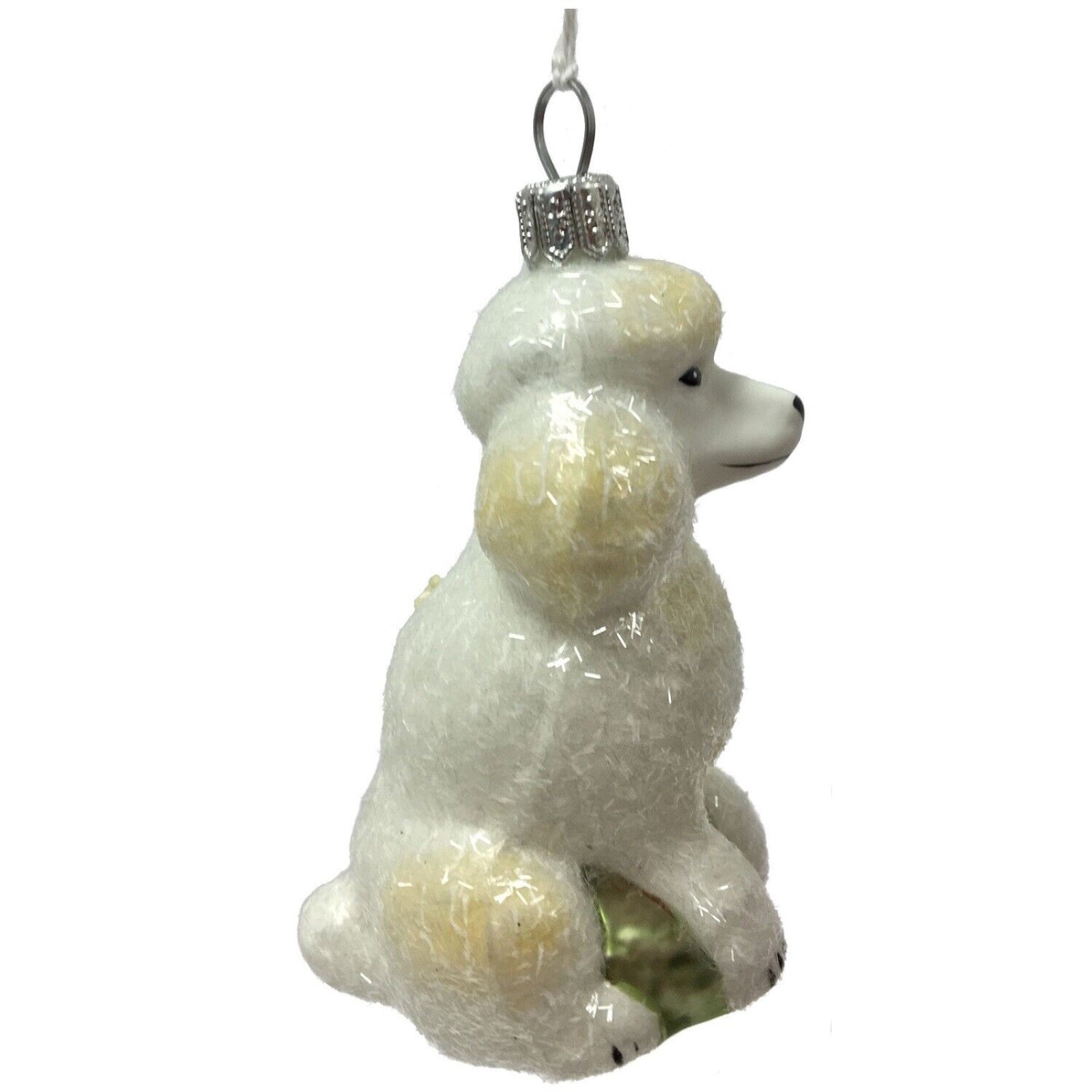 White Glittered Poodle Dog Polish Glass Christmas Ornament Pet Animal Decoration