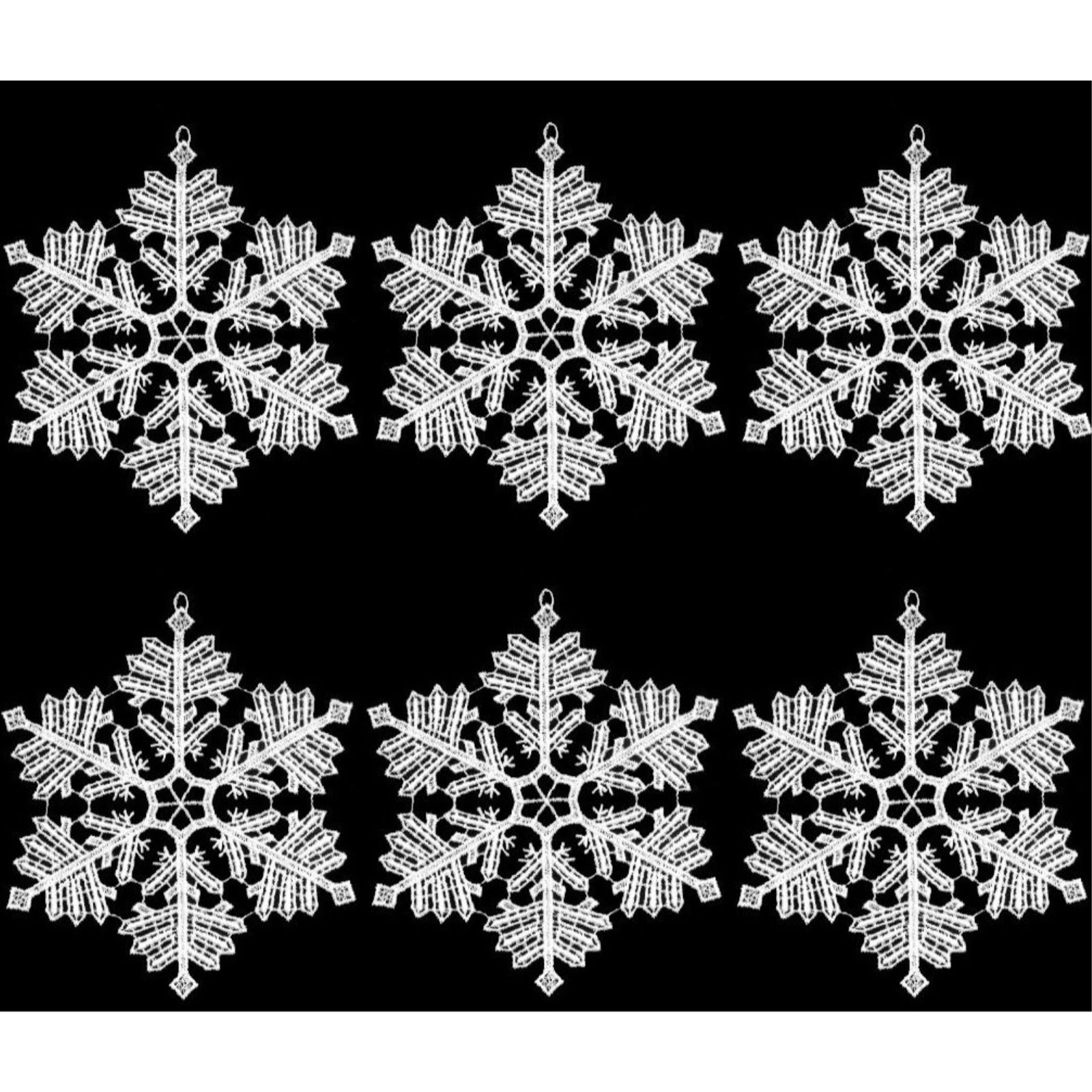 White Snowflake Snowstars Christmas Tree German Lace Ornament 5.9 Inch Set of 6