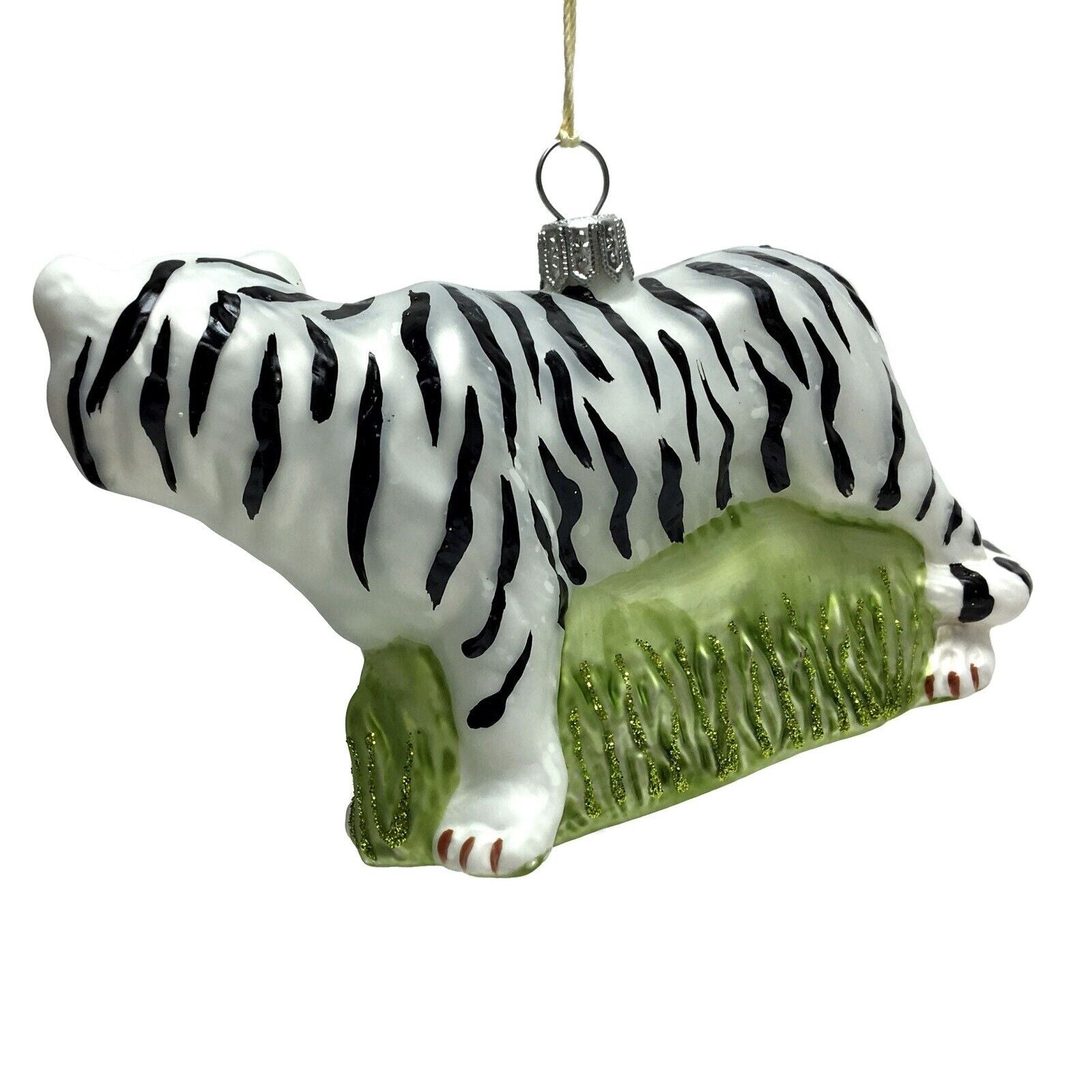 White Tiger Polish Glass Christmas Tree Ornament Animal Wildlife Decoration