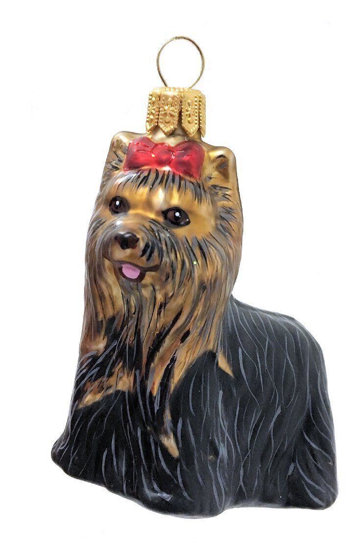 Yorkshire Terrier Yorkie with Bow Dog Polish Glass Christmas Tree Ornament Pet